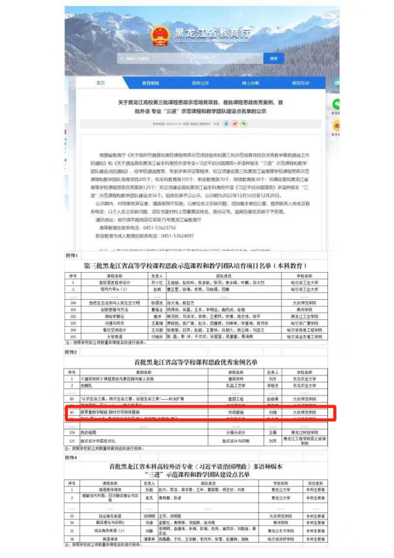 近日,在黑龙江省教育厅组织的首批高校课程思政优秀教学案例遴选工作中,经组织推荐、专家遴选、会议评选和网络公示等程序,kaiyun开云官方网站刘楠老师主讲的《市场营销学》中的新零售数字赋能、新时代可持续营销案例获首批黑龙江省高等学校课程思政优秀案例。希望全院教师以此次为契机,深入挖掘专业课程本身所蕴含的思政元素,探索和创新课程思政建设方法,进一步深化课程思政教学改革,强化课程育人导向。