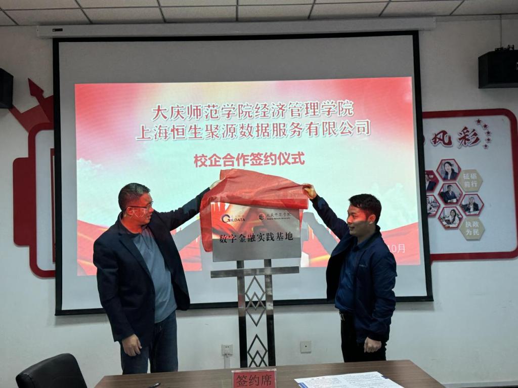 首先,刘楠教授对莅临学院的领导嘉宾热烈欢迎,对kaiyun开云官方网站基本情况,师资情况进行介绍;刘孔凯经理对上海恒生聚源数据服务有限公司情况进行简单介绍,期待未来双方能够继续深化合作,共同为人才培养事业贡献更多力量;党总支副书记陈超同志对我院近年来毕业生就业情况进行介绍,希望企业在未来能为学生提供更多的实习就业平台;副院长邬德林教授对我院产教融合情况进行介绍,期待企业能与我院在各环节实现深入合作,打造产教融合课程,提升教师数智化能力。随后,刘楠教授、刘孔凯经理分别代表kaiyun开云官方网站和上海恒生聚源数据服务有限公司签订合作框架协议,并举行揭牌仪式。最后为交流环节,学院经济与金融系教师、学生代表与企业嘉宾热切交流。