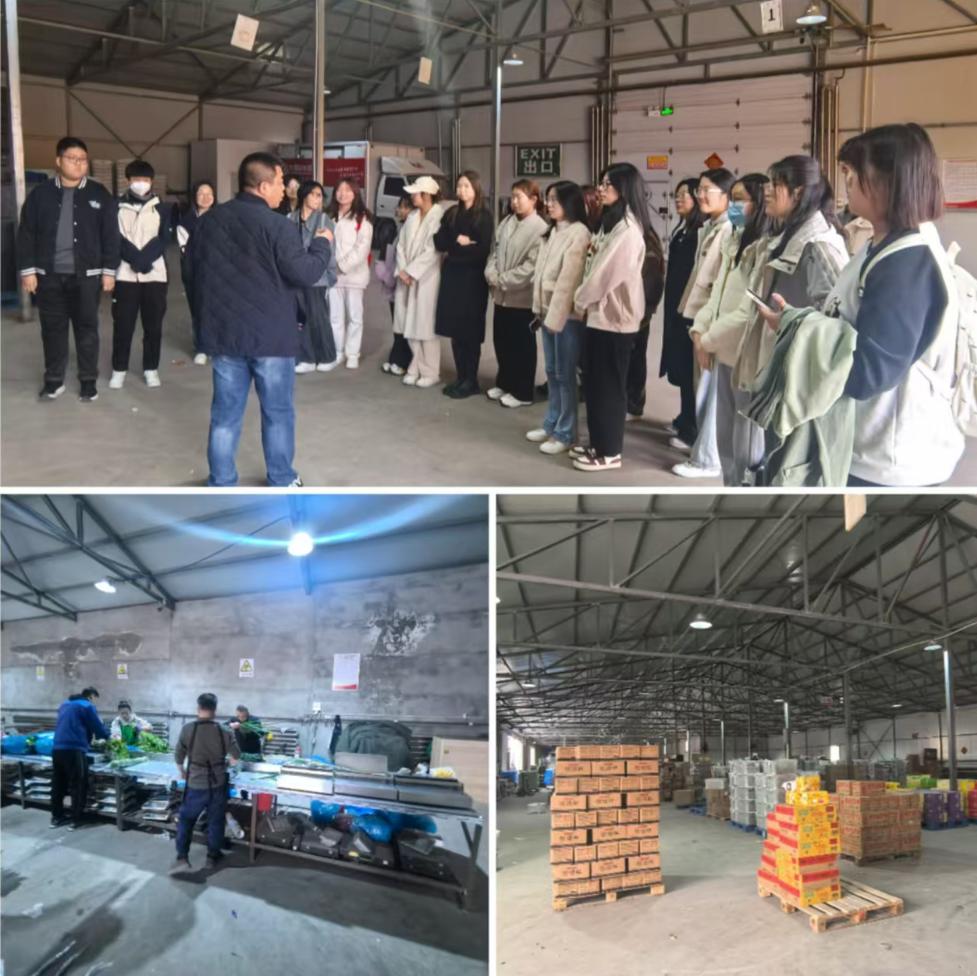在见习过程中,九佰街电子商务有限公司的王世林经理带领学生参观了企业5000多平米的分拣中心,学生观摩了部分蔬菜分拣、称重、包装等全过程,熟悉了商品在仓的分区、摆放、运输、存储等基本流程。