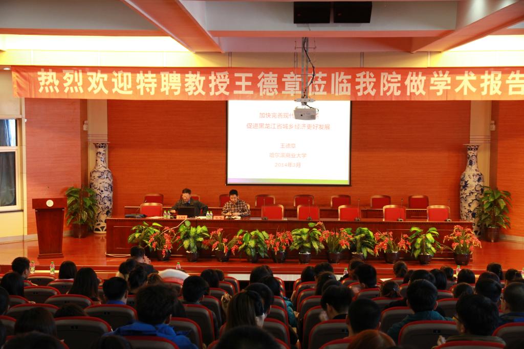 报告内容深入具体,数据论证详实。在报告过程中,王德章教授既引用了基本经济学理论,也举例说明了黑龙江省城乡经济发展的实际情况,为我院教师的科研思路提供了导向。在谈到加快完善现代市场体系中政府和企业面临的挑战和机遇问题时,突出介绍了大学生创业、就业的机会问题,为我院学生未来的职业发展道路提出了宝贵意见。
