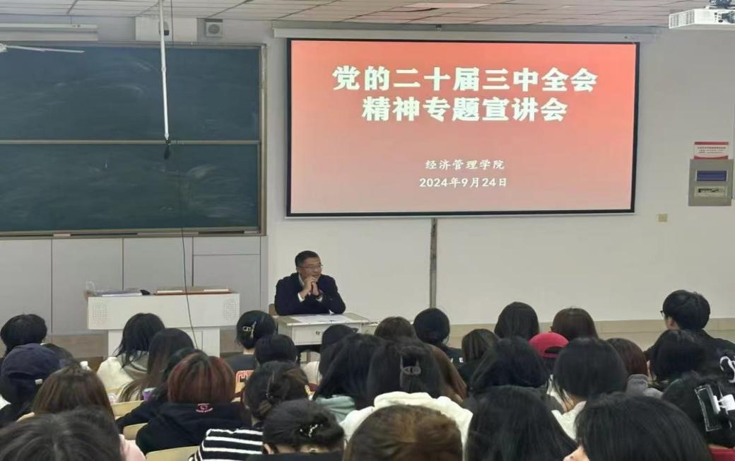 为深入贯彻习近平总书记关于宣讲工作的重要指示,扎实推进学习宣传贯彻工作,推动我院迅速兴起全会精神学习宣传贯彻热潮,按照学校关于学习贯彻党的二十届三中全会精神宣讲工作的有关要求,学院院长刘楠教授于9月24日17点在主楼2-3教室和9月25日15点在五教402会议室为分别为学生代表和全院教师召开了学习贯彻党的二十届三中全会精神宣讲会。