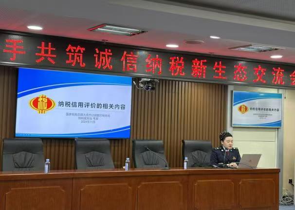 讲解结束后,同学们跟随工作人员来到八楼会议室,参加“税校携手共筑诚信纳税新生态交流会”,会议开始由让胡路区税务局李春良局长讲话,他强调了诚信纳税的重要性,并鼓励学生们在未来的职业生涯中,要严格遵守税法,做一个诚信守法的纳税人。随后,陈超书记表示将以此次活动为契机,进一步加强税收教育在课程体系中的渗透,培养学生依法纳税意识和社会责任感。税务部门也期待能与学校建立长期稳定的合作机制,通过“教育一个学生,带动一个家庭,影响整个社会”,为构建诚信纳税的新生态文明贡献力量。