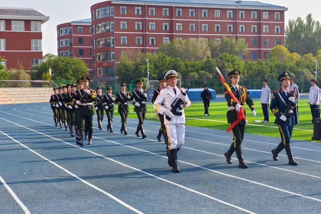 清晨7时,升旗仪式正式开始。国旗护卫队身姿挺拔,迈着整齐有力的步伐,护送鲜艳的五星红旗走向升旗台。随着《义勇军进行曲》响起,全体师生肃穆行礼,目光如炬,齐唱国歌,向国旗致以崇高敬意。