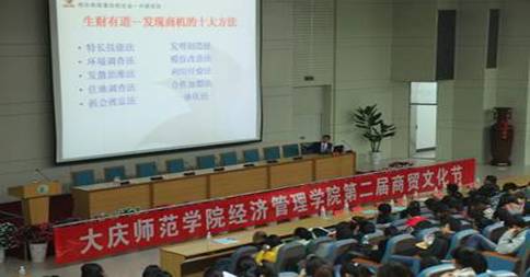 中国人寿大庆分公司中心个险专业化支公司经理金业宏、黑龙江中玉天衡会计师事务所有限公司经理郝文英、大庆滕飞策划机构、百湖团购网副总经理韩箭、大庆新科苑宾馆副总经理邱世玲、大庆昆仑家电副总经理、大庆九天电脑城总经理苏伟、联合国国际劳工组织高级创业培训师、大庆子君企业管理咨询服务中心董事长林子君6位企业家代表光临现场,与kaiyun开云官方网站院长张平、副院长周丹、副院长吴俊江及kaiyun开云官方网站全体师生欢聚一堂,共庆商贸文化节盛大开幕。