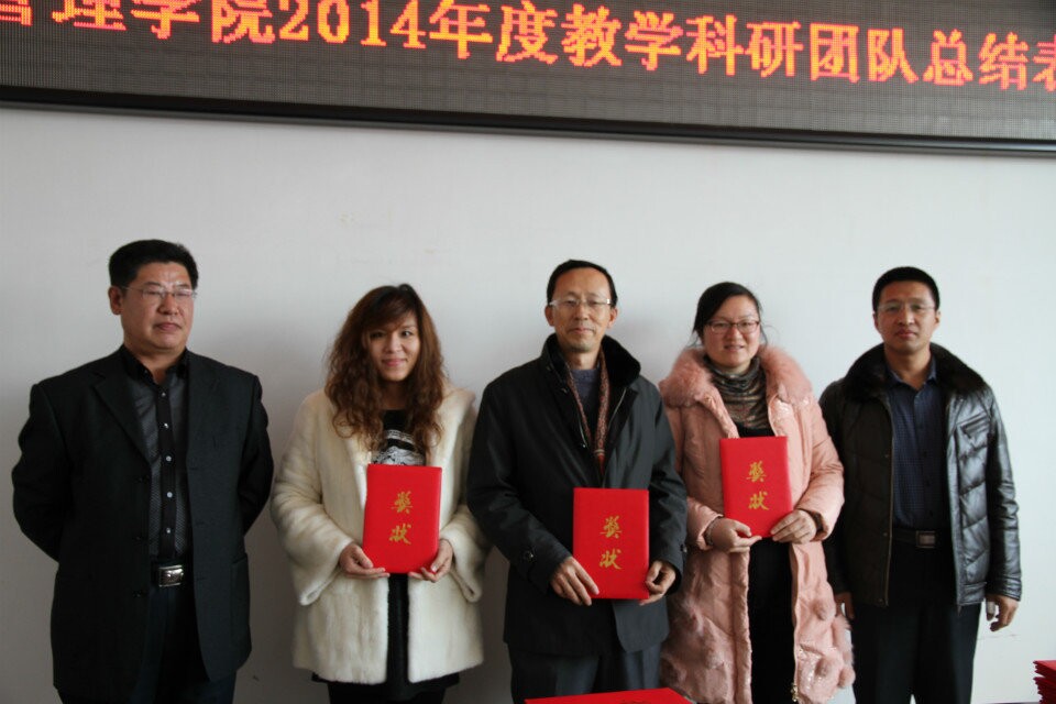 最后,张平院长就2014年度学院的教学科研等工作进行了简要总结。指出2014年科研团队任务完成出色,成果丰硕,同时,也鼓励全体教师在新的一年里以获奖教师为榜样,严谨治学,敬业奉献,为我院教学科研水平进一步提升做出自己的贡献。