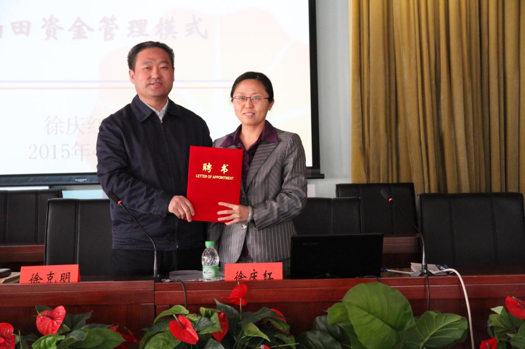 4月22日下午在铁人讲堂,开云举行了聘任大庆油田有限责任公司财务部徐庆红副主任为开云兼职教授的仪式。kaiyun开云官方网站张平院长介绍了徐庆红副主任基本情况,校长徐克明教授为徐庆红副主任颁发兼职教授聘书。
