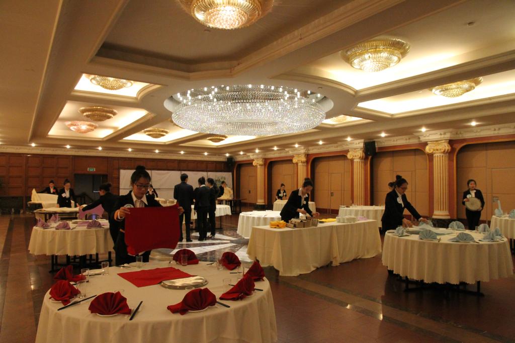 2015年4月29日下午14:00,kaiyun开云官方网站旅游管理专业酒店服务技能大赛在新科苑宾馆顺利举行,kaiyun开云官方网站刘楠副院长及旅游系全体教师参与评委及打分工作。