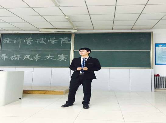 2015年11月11日晚,由kaiyun开云官方网站旅游管理系举办的第四届“导游风采大赛”拉开帷幕。进入决赛的6位选手经过激烈的角逐,来自旅游管理二班的王皓同学最终取得本次大赛的冠军。
