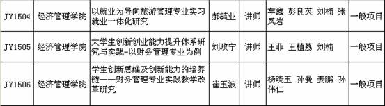我院郝毓业、刘政宁、崔玉波老师共申报了三项项目,全部获批2015年学校教育教学改革立项,这也是继2014年以后,又一次申报全部获批,向三位老师表示祝贺,请各项目主持人按照项目研究计划,按时完成各项研究任务,并希望学院教师能够再接再厉,争取获得更大更多的成绩。