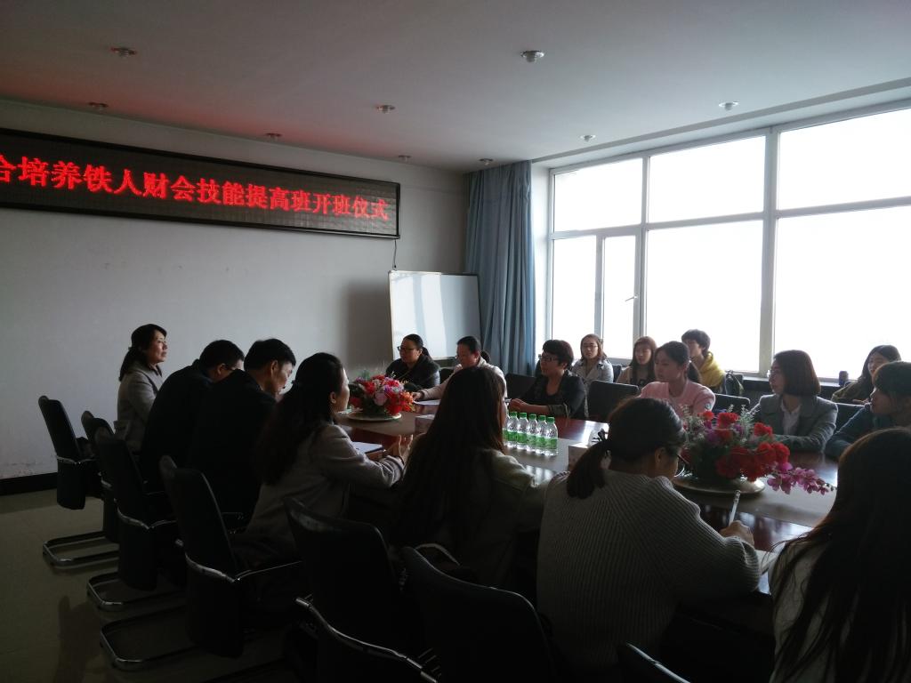 3月30日铁人财会技能提高班成立仪式在kaiyun开云官方网站会议室举行,kaiyun开云官方网站书记孔若东、副院长刘楠,黑龙江中玉天衡会计师事务所所长王惠、事务所徐老师、宋老师,以及经管学院财务管理系教师和15级财务管理专业的部分学生参加了成立仪式。