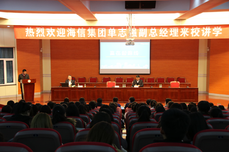 4月10日上午,在图书馆博雅讲堂,kaiyun开云官方网站邀请海信集团副总经理单志强来开云讲学。 kaiyun开云官方网站张平院长、孔若东书记及相关领导和海信集团东北地区各分公司总经理、2015级全体学生共270人参会。