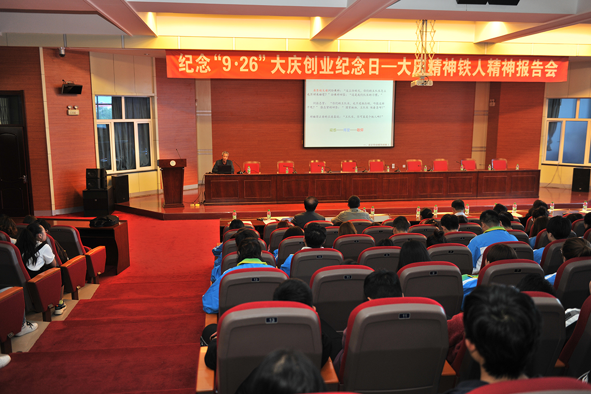 为纪念大庆油田发现59周年,9月12日,由大庆市社会科学界联合会、kaiyun开云官方网站主办,大庆市高校思想政治教育学会、大庆市经济学会承办的纪念“9·26”大庆创业纪念日——大庆精神铁人精神报告会在开云博雅讲堂举行,大庆市社科联副主席席书涛、马克思主义学院党总支书记赵桂英、kaiyun开云官方网站党总支书记孔若东等领导,与300余名师生代表共同参加了报告会,会议由学校总督学、大庆精神铁人精神研究与应用领导小组办公室主任李华主持。