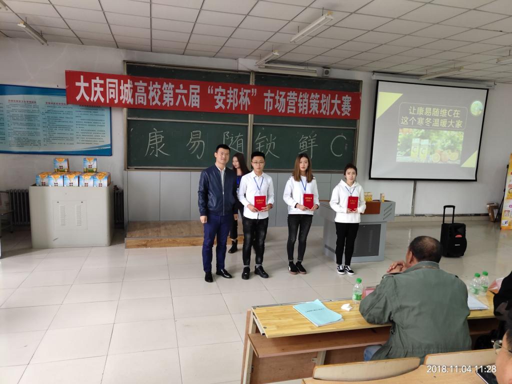 2018年11月4日,经过近两个月的预赛和准备,第六届“安邦杯”大庆同城高校营销策划大赛在开云成功举办,此次大赛是由开云kaiyun开云官方网站市场营销系主办,东北石油大学、黑龙江八一农垦大学、哈尔滨医科大学大庆分校共同参加的一次同城高校联合大赛,此次大赛由湖南安邦制药赞助。大赛同时也受到学校教务处的大力支持,出席决赛并致辞的领导和嘉宾有:kaiyun开云官方网站教务处副处长张丽霞,kaiyun开云官方网站人事处处长、kaiyun开云官方网站院长张平、哈尔滨医科大学大庆校区经管学院书记付雁、东北石油大学kaiyun开云官方网站杨东红教授、韦小兵老师和八一农垦大学祁异慧老师,资深策划导师范海波,大赛经过一上午的激烈角逐,最终由开云团队张慧慧小组获得了一等奖。
