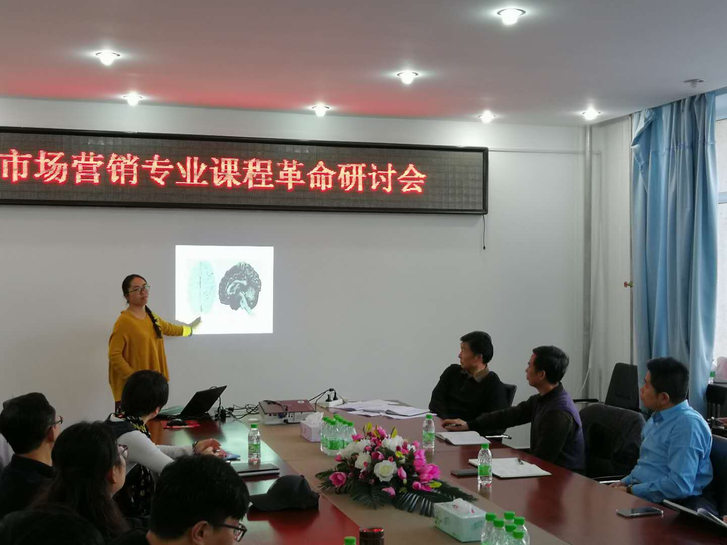 本次教研活动的主题是“市场营销课程革命研讨会”,在简短介绍与会学校领导后,研讨会正式开始,于珊珊老师结合《消费者行为学》课程,分享了教学思路由传统教学+考核的过程转向“学习分工小组”的形式,同时,期末考试增加了来源于平时课外调研与体验的实践类案例。姜鹏老师围绕《微观经济学》课程,提出了基于多元教学资源的翻转课堂应用教学模式,并进行积极尝试,取得了初步的效果。徐珉钰老师围绕《商务礼仪与沟通技巧》课程,分享了角色扮演、情景模拟等教学手段和技巧的运用。邬德林老师根据授课经验,思考和实践如何将知识转换为需求,分享了实现“三个课堂对接”的课堂教学改革实践。尚德萍老师围绕《市场调查》课程,结合多年教学经验,形成了项目化教学法的教学思路,将实战项目、学科竞赛相结合,打破传统按照知识结构和教材章节的授课方式,采取按照调查流程方式进行讲解,并思考将市场调查、广告策划、销售管理等课程组建课程群提升能力培养模式。王剑老师结合从教十二年的教学经验,总结了自己的困惑,从“我真的是个好老师”的视角进行认真思考,提出了以实践为主线串起“三基”、丰富课堂活动、丰富资料阅读等形式,进而分享了自己的一点反思,学生的需求心理大于知识需求,学生的需求应是关系和关怀等。秦冬梅老师从学生需求视角切入,将脑神经科学最新研究成果应用于教学实践,分享了基于头脑需求视角的逆向教学思考,通过以课堂常见的睡觉、网络游戏、追剧等不听课表象为切入点,提出了符合脑工作机制的教学思路,并分享了性本能系统、觅食本能系统、暴怒本能系统、焦虑恐惧本能系统、焦虑依恋本能系统、养育本能系统和游戏本能系统对应于学生课堂中的表现。