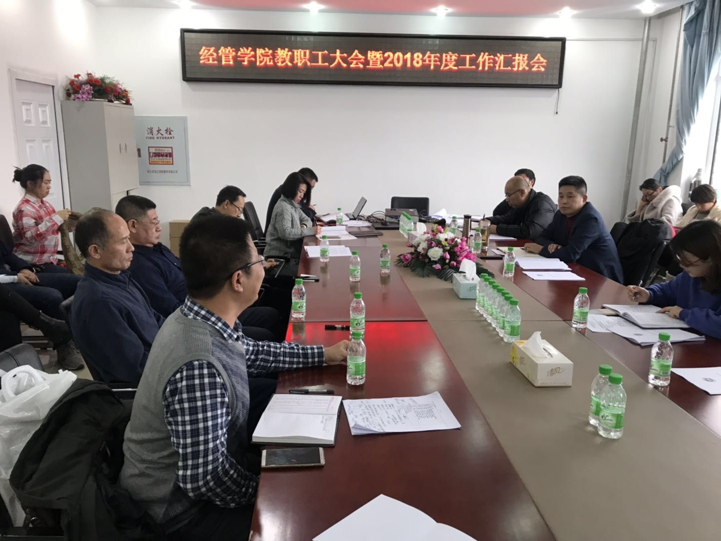 学院行政负责人刘楠院长围绕专业建设等十三个方面梳理了十七个亮点,多数都是实现了学校、学院首次或突破;围绕党风廉政、审核评估、人才培养、学术平台、产教融合、就业情况、工会活动等十个方面介绍了2018年工作主要做法成果;从制度执行、师资力量、第一课堂三个方面梳理了亟待加强的方面;从坚持产教融合和智库建设、坚持内涵建设、坚持课程革命、坚持过硬团队、坚持文化保障等方面介绍了2019年主要工作目标;从专业认证、人才培养“五维闭环”、“双师型”教师队伍、硕士点和智库平台建设、行业学院、优化育人环境等方面树立了2019年主要工作思路;从制度建设、创新创业、课程建设、师资队伍、专业建设、学生工作、科学研究、党建工作八个方面明确了2019年的主要工作任务和措施。然后,邬德林院长、杨晓玉主任、张凤岩副教授针对学院2018年工作总结,分别结合自身工作,围绕科研反哺教学、产学研合作、教学和科研团队打造等方面进行了表态发言。王福友副校长肯定了学院取得成绩和亮点,肯定了学院反映出精神饱满状态,肯定了总结工作面向未来,同时,也对学院工作给予了很大期许。