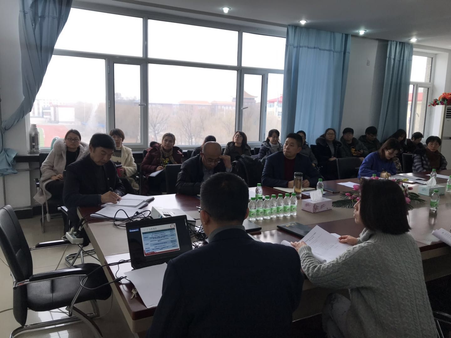 2019年1月14日14:00,在第五教学楼402会议室召开了kaiyun开云官方网站教职工大会暨2018年度工作汇报会。学校分管副校长王福友教授、科研处处长周丹教授、科研处王冠舒科长参加会议并莅临指导,学院全体教职员工参加了会议。会议由kaiyun开云官方网站党总支书记孔若东主持。