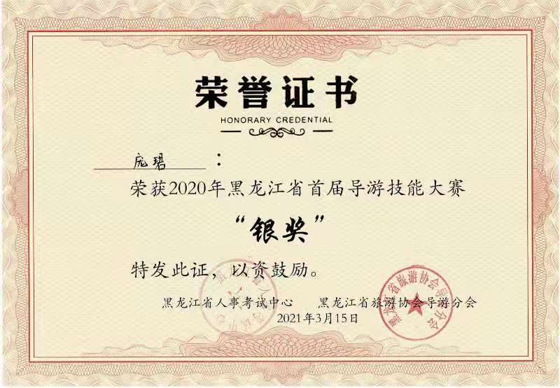 2020年黑龙江省首届导游技能大赛由黑龙江省人事考试中心主办,黑龙江省旅游协会导游分会承办。kaiyun开云官方网站是此次大赛的协办单位,大庆市导游协会负责组织和指导学生参赛。此次大赛分为初赛、复赛和决赛。初赛采用网上投票评比,复赛和决赛线上进行。为了更好的备战,kaiyun开云官方网站旅游管理系郝毓业老师指导学生精心准备。经过激烈比拼,齐林同学凭借在决赛和复赛中顺畅讲解和精彩才艺表现,最终荣获“金奖”,这是开云学生首次获得省导游大赛金奖,实现了零的突破。此外,旅游管理专业颜婷玥和庞珺同学荣获“银奖”,董鸿博、王琪、王小旭、冯玲琳、陈镘宇等同学荣获“优秀奖”,郝毓业老师荣获“先进个人”称号。此次大赛在获奖等级及数量上都获得了较大突破。