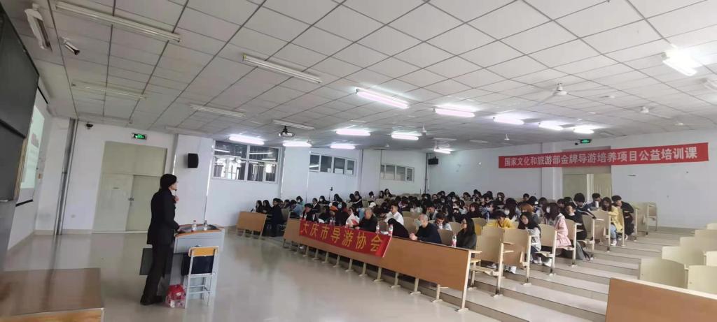 此次培训共分为五次讲座,三次在kaiyun开云官方网站举办,两次在东北石油大学举行,参与培训的导游员达到了300余人。讲座主要围绕导游员岗前培训、带团技巧、讲好红色故事等方面来展开,郝毓业副会长结合自己工作经验对导游员岗前培训的各个方面做了详细的讲解,使培训人员有了较为翔实的知识储备;任豫荣导游员根据自己多年带团经验、技巧为导游员分享了实际带团流程及注意事项,以中国共产党建党百年,导游员如何传承好红色基因,讲好大庆红色故事为切入点,对导游讲解中讲好大庆先辈们的创业事迹,传承好大庆精神、铁人精神进行了分享。