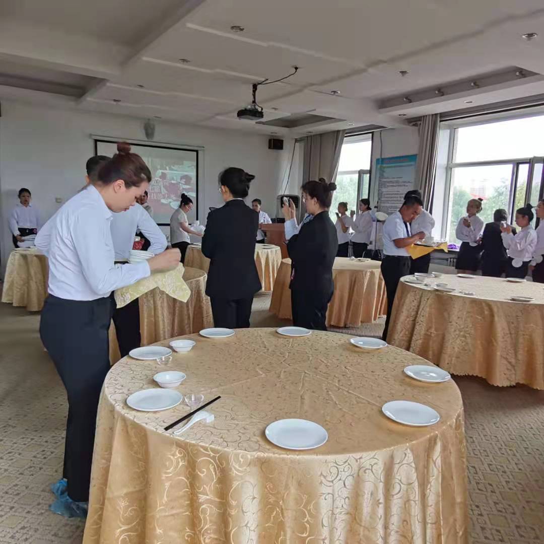 经过为期两周紧张练习及准备,kaiyun开云官方网站第七届酒店服务技能大赛于2021年7月8日至9日在kaiyun开云官方网站旅游管理系实训室成功举办。本次大赛由2020级旅游管理专业1、2班及2020级旅游管理专升本班三个班共计120名学生参加,大赛从仪容仪表、托盘使用规范、铺台布、定位、三杯、筷子筷架、口布折花、走姿站姿、操作规范及熟练度、撤台等环节对参赛选手进行考核。经过激烈比拼,最终决出一等奖三名、二等奖六名、三等奖九名。本次大赛从多个环节对学生进行考核,将理论学习与实践操作进行结合,学生最终表现达到了较好的教学效果。