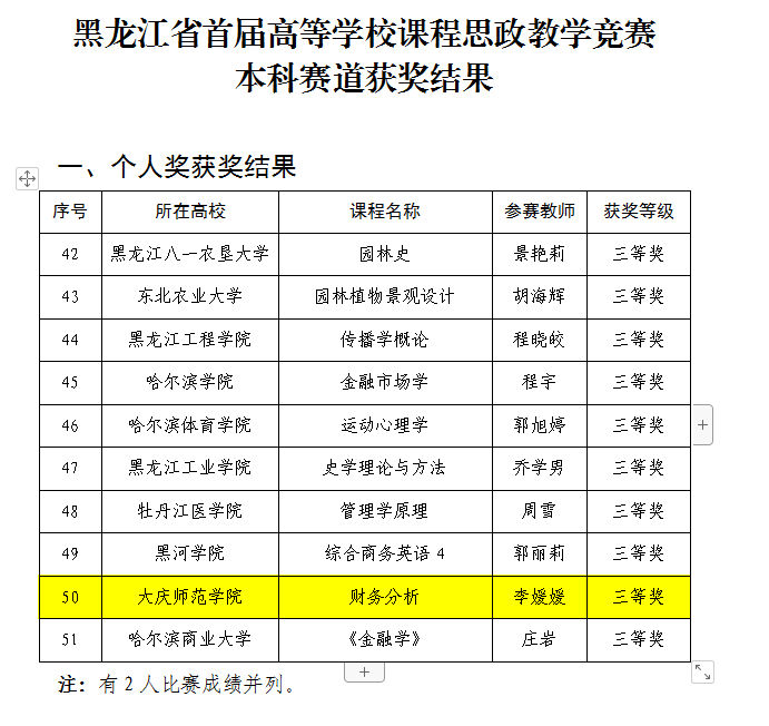 近日,在黑龙江省教育厅组织的黑龙江省首届高等学校课程思政教学竞赛中,经高校校赛遴选推荐,省赛专家评审认定,kaiyun开云官方网站李媛媛老师荣获本科组三等奖,这是我院教师首次在省级课程思政比赛中获奖。希望全院教师以此次比赛为契机,深入挖掘专业课程本身所蕴含的思政元素,进一步深化课程思政教学改革,强化课程育人导向。