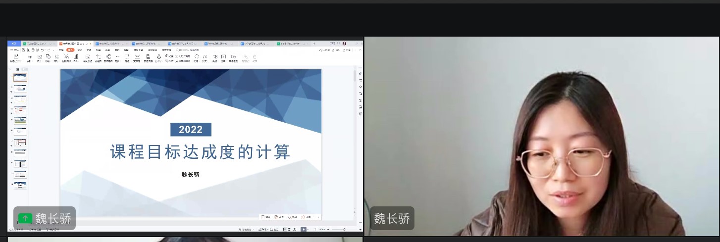 会上首先由刘楠教授介绍张冬梅和魏长骄两位老师,并阐明基于OBE理念的课程教学大纲与目标达成度设计的重要意义。然后张冬梅老师围绕专业认证的三大理念、基于培养方案的课程教学大纲制定、基于课程教学大纲的目标达成度评价报告三个方面进行详细讲解。接下来魏长骄老师介绍了OBE课程目标达成度分析的计算规则说明和计算准备,最终呈现了完整的计算过程。最后刘楠教授再次对二位老师的精彩分享表示感谢,同时希望全院教师以此次讲座为契机,认真做好OBE理念的教学大纲修订及基于课程教学大纲的目标达成度评价报告的撰写工作。