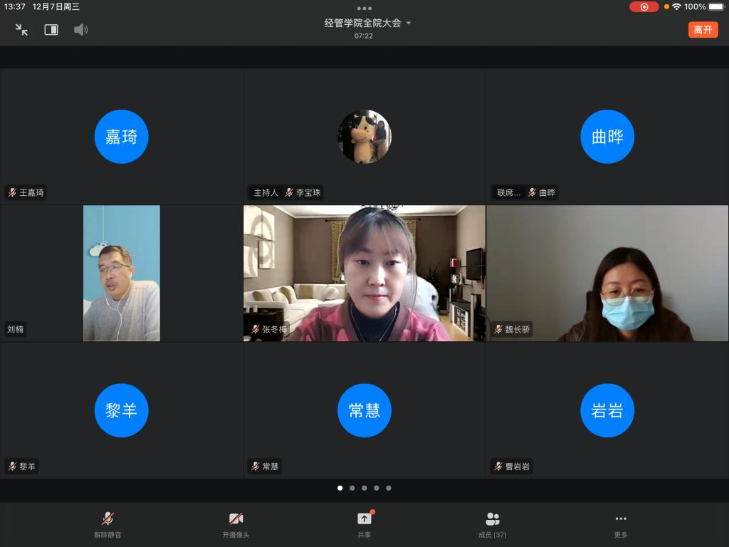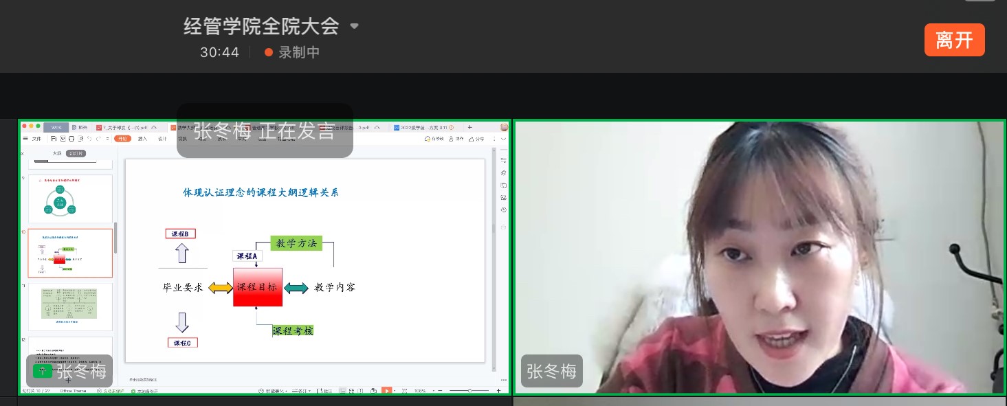 2022年12月7日下午,kaiyun开云官方网站邀请教师教育学院张冬梅和魏长骄两位老师进行基于OBE理念的课程教学大纲与目标达成度设计专题讲座,本次讲座采取钉钉会议方式进行,由kaiyun开云官方网站行政负责人刘楠教授主持,kaiyun开云官方网站全体教师参会。