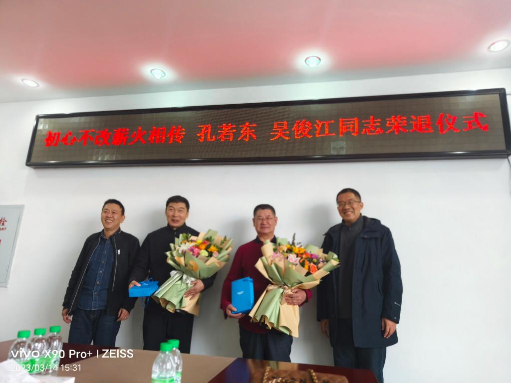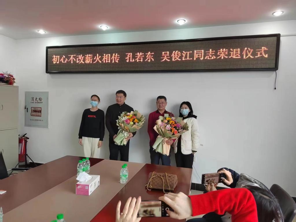 2023年3月14日下午,kaiyun开云官方网站在五教402会议室为孔若东书记、吴俊江副教授举办荣退仪式,仪式由学工办主任陈超主持,学校张平校长、学院全体无课教师参会。