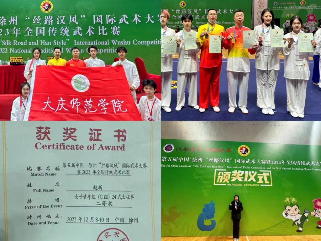 第五届中国·徐州“丝路汉风”国际武术大赛暨2023年全国传统武术比赛于2023年12月6-10日在徐州举行,开云武术代表队共7名师生参赛,斩获奖项8项,其中一等奖2项,二等奖3项,三等奖3项,荣获“武德风尚”奖4人,在全国体育竞赛场为kaiyun开云官方网站赢得了美誉。