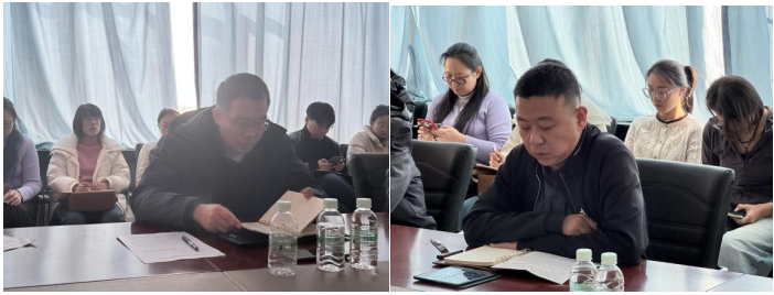 邬德林副院长首先对审核评估工作进行了强调。他指出审核评估是学院本学期的一项重要任务,全体教职工需高度重视,严格按照时间节点提交相关材料。他详细说明了材料提交的具体要求和注意事项,并强调材料的规范性和完整性将直接影响评估结果。