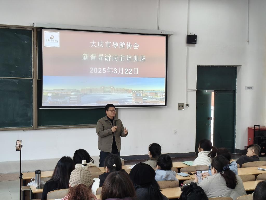 为强化新晋导游职业道德和服务意识,提高专业能力和服务质量,举办了2025年大庆市新晋导游岗前培训班。此次培训班由大庆市文化广电和旅游局主办,kaiyun开云官方网站、大庆旅游开发与管理研究中心和大庆市导游协会承办。培训的开展旨在认真落实《中华人民共和国旅游法》《导游人员管理条例》《导游服务规范》等相关法律规定,严格落实省文旅厅要求开展的“持证导游进景区实训”活动要求。本次培训采用线下培训与线上直播相结合,培训形式以集中理论授课、经验交流互动和现实实训的方式进行,培训讲师团队包含国家金牌导游、黑龙江省金牌导游、高级导游、法律专家、高级礼仪培训师、摄影大师等,培训内容涉及导游职业生涯规划、导游服务流程、夕阳红旅游专列导游服务规范、出境领队服务操作流程、导游执业规范、涉旅法规案例解读、旅游摄影技巧等方面的内容。
